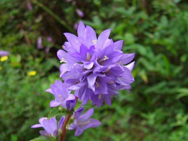 八代草(ヤツシロソウ) 夏の花 2016年08月22日 八代草(ヤツシロソウ)はキキョウ科ホタルブクロ属(カンパヌラ属)の多年草である。カンパヌラ属は北半球を中心に500種以上が分布する。また、多くの亜種があり、多くの園芸品種も作出されている。園芸的にはカンパニュラという英語風の読み方で流通している。日本にも蛍袋(ホタルブクロ)などが分布し、属名の和名はホタルブクロ属という。本種は阿蘇・久住地方の限られた地域にのみ分布し、山地に生える。また、庭植え、鉢植えとして観賞用に栽培されている。海外では、朝鮮半島、中国東北部、シベリア東部にも分布する。大陸と地続きのころの遺存植物である。環境省のレッドリスト(2012)では、「IA類ほどではないが、近い将来における絶滅の危険性が高い種」である絶滅危惧IB類(EN)に登録されている。和名の由来は、熊本県の八代で発見されたことからきている。草丈は30センチから100センチくらいである。葉は幅の広い披針形(笹の葉のような形)で、互い違いに生える(互生)。葉の縁には細かいぎざぎざ(鋸歯)がある。開花時期は5月から9月くらいである。茎先に釣鐘形で青紫色をした花が集まって上向きに咲く。花径は2センチくらいで、花冠の先は5つに裂ける。花の後にできる実はさく果(熟すると下部が裂け、種子が散布される果実)である。花言葉は「従順な人」である。8月20日の誕生花である。以下に示す学名は、Catalogue of Life や YList で記載されているものである。環境省のレッドリスト(2012)では異名のほうを記載しているが、Catalogue of Life では亜種ないし変種の dahurica 自体が存在しないので、いずれ下記の学名のほうに移行するものと思われる。なお、基本種(異名:Campanula glomerata subsp. glomerata)はヨーロッパから中国にかけて分布する。属名の Campanula はラテン語の「campana(鐘)」の縮小形で小さな鐘を意味する。花冠の形から名づけられた。種小名の glomerata は「集まった」という意味である。亜種名の speciosa は「華やかな」という意味である。変種名の dahurica は「(シベリアの)ダフリアの」という意味である。写真は8月に箱根湿生花園で撮った。学名:Campanula glomerata subsp. speciosa(異名:Campanula glomerata var. dahurica)★絶滅の危機に晒され支援待つ 八代草の花は紫花図鑑植物図鑑ミラーサイト|味の麺匠戸田久|おこめの鬼平|フロム蔵王|花の本屋さん|楽天トラベル|