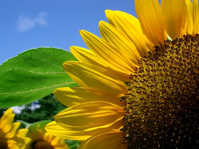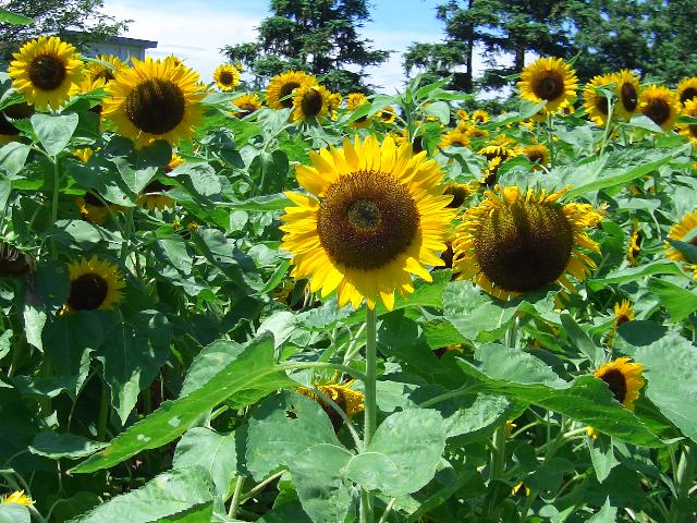 向日葵(ヒマワリ) 夏の花 2016年08月24日 日輪に恋す向日葵照り映えて向日葵(ヒマワリ)はキク科ヒマワリ属(ヘリアンツス属)の一年草である。ヘリアンツス属は北アメリカを中心に暫定的学名だが76種が分布する。(Catalogue of Life: 2016 Annual Checklist より)また、多くの栽培品種が作出されている。代表種の本種に向日葵(ヒマワリ)の和名があり、属名の和名はヒマワリ属という。本種の原産地も北アメリカで、西部に分布する。1510年にスペイン人によってヨーロッパに紹介され、スペインで商品栽培が開始された。英名はサンフラワー(sunflower)という。ロシアでは国花とされている。中国名は向日葵(xiang ri ku)である。日本へは中国を経由して江戸時代の初期に渡来した。和名は、中国名の漢字にひまわり(いつも太陽に顔を向けて咲く花)の名を充てたものである。種子を栽培するほか、庭植え、鉢植えとして観賞用にも栽培される。草丈1メートルから3メートルくらいである。茎は直立をする。葉はハート形で、互い違いに生える(互生)。葉の縁には粗いぎざぎざ(鋸歯)がある。開花時期は6月から10月である。茎先に花径20センチから30センチくらいの黄色い大きな頭花をつける。品種改良も進んで、巨大輪のものから中小輪まで様々な品種が生まれている。花の後にできる実はそう果(熟しても裂開せず、種子は1つで全体が種子のように見えるもの)である。栽培用のものは種子は食用とし、また油を採る。日輪草(ニチリンソウ)、日車草(ヒグルマソウ)などの別名がある。俳句の季語は夏である。花言葉は「光輝」である。8月22日の誕生花である。属名の Helianthus はギリシャ語の「helios(太陽)+anthos(花)」からきている。頭花の様子や日に向いて開くことなどから名づけられた。種小名の annuus は「一年生の」という意味である。写真は8月に神奈川県立フラワーセンター大船植物園で撮った。学名:Helianthus annuus★眩しげに咲く向日葵に照る日差し 梅雨明けの空八月の空☆向日葵の中に幾万ハート型 夏の陽射しに胸を張るよに花図鑑植物図鑑ミラーサイト|味の麺匠戸田久|おこめの鬼平|フロム蔵王|花の本屋さん|楽天トラベル|