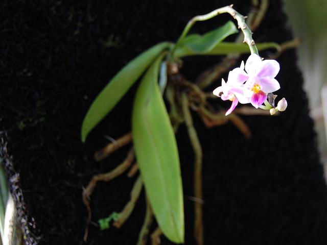ファレノプシス・エクエストリス 春の花 2016年08月10日 ファレノプシス・エクエストリスはラン科コチョウラン属(ファレノプシス属)の常緑多年草である。ファレノプシス属は東南アジアを中心に71種が分布する着生種である。(Catalogue of Life: 2016 Annual Checklist より)属名の読み方はファラエノプシスとするものもある。代表種のファレノプシス・アフロディテ(Phalaenopsis aphrodite)に胡蝶蘭(コチョウラン)の和名があり、属名の和名もコチョウラン属という。本種の原産地は台湾やフィリピンである。樹上に着生したり岩に根を張ったりする着生種である。中国名は小蘭嶼蝴蝶蘭という。和名は姫胡蝶蘭(ヒメコチョウラン)である。小形種の重要な交配親となっている。草丈は20センチから30センチくらいである。葉は長い楕円形で先が尖る。開花時期は4月から5月である。茎先に総状花序(柄のある花が花茎に均等につく)を出し、花径2センチから3センチの花を垂れ下げる。花の色はピンクを帯び、唇弁は濃いピンクである。花言葉は「あなたを愛している」である。属名の Phalaenopsis はギリシャ語の「phalaina(蛾)+opsis(のような)」からきている。花の形が蛾に似ていることから名づけられた。種小名の equestris は「騎士の」という意味である。剣形の葉を持つ様子をたとえたものである。写真は12月につくば植物園で撮った。学名:Phalaenopsis equestris★小さくて舞うがごとくの花姿 ピンクが似合う姫胡蝶蘭花図鑑植物図鑑ミラーサイト|味の麺匠戸田久|おこめの鬼平|フロム蔵王|花の本屋さん|楽天トラベル|