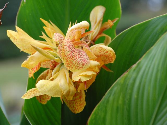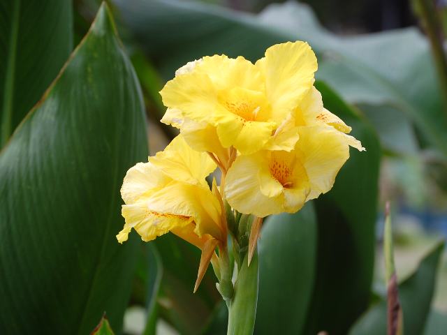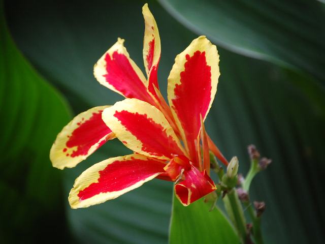 カンナ 秋の花 2016年08月13日 小気味良くビート利かせてカンナ咲くカンナはカンナ科カンナ属の多年草である。カンナ属は南北アメリカ大陸の熱帯・亜熱帯地域に10種が分布する。(Catalogue of Life: 2016 Annual Checklist より)また、多くの園芸品種が作出されている。一般にカンナと呼ばれているのは、檀特(ダンドク)を主体に改良された園芸品種である。YListでは、その和名を花カンナ(ハナカンナ)とし、カンナを別名としている。英名はカンナリリー(canna lily)という。日本へは、檀特(ダンドク)が江戸時代の前期に渡来した。花カンナ(ハナカンナ)が渡来したのは明治時代の後期である。庭植え、鉢植えで観賞用に栽培されている。草丈は100センチから150センチくらいである。芭蕉(バショウ)に似た大型の楕円形の葉を数枚つける。開花時期は6月から10月である。花弁のように見えるのは雄しべが花弁化したもので、本当の花弁は萼のように小さく目立たない。花の色は緋色、桃色、橙色、黄色、白、絞りなど多彩である。花の後にできる実はさく果(熟すると下部が裂け、種子が散布される果実)である。俳句の季語は秋である。花言葉は「情熱」である。8月13日の誕生花である。属名の Canna は、ケルト語の「can(芦)」が転じてこの属の名に使われた。種小名の generalis は「一般の」という意味である。写真は9月に大阪市大植物園で撮った。品種名は上からイタリアーナ、リベレーション、ルシファー、ヒロナムイエローである。学名:Canna x generalis★南国の湧き立つようなパッションを 伝う大輪ビート利かせて☆華やかな色を咲かせて花カンナ 夏の暑さが一際似合い 花図鑑植物図鑑ミラーサイト|味の麺匠戸田久|おこめの鬼平|フロム蔵王|花の本屋さん|楽天トラベル|