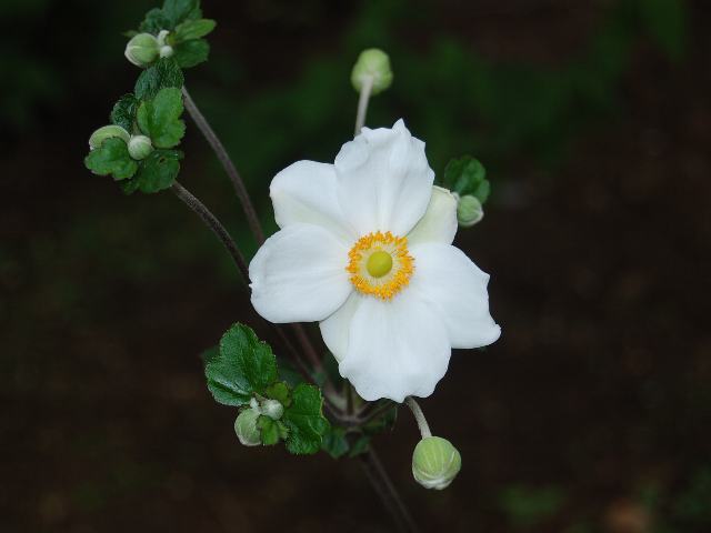 秋明菊(シュウメイギク) 秋の花 2016年10月18日 秋明菊(シュウメイギク)はキンポウゲ科イチリンソウ属(アネモネ属)の多年草である。アネモネ属は北半球に150種くらいが分布する。日本にも一輪草(イチリンソウ)などが分布し、属名の和名はイチリンソウ属という。本種の原産地は中国である。中国名は秋牡丹(qiumudan)という。日本へは江戸時代以前に中国から渡来した。文献上では「花壇綱目」(水野元勝著, 1681刊)に記載があり、その頃には既に定着していたものと想定できる。庭植えや鉢植えとして観賞用に栽培され、切り花やドライフラワーともされる。また、青森県を除く各地で野生化している。ちなみに、北海道のブルーリストではDランク(北海道に導入されており定着することが懸念されるが状況は不明な外来種)に選定されている。和名の由来は秋に菊に似た花を咲かせるというところからきているる。特に京都の貴船山に多いので貴船菊(キブネギク)の別名がある。草丈は50センチから100センチくらいである。葉は3出複葉(1枚の葉が3つの小さな葉に分かれた形)で、根際から生える葉と茎につく葉がある。根際から生える葉のほうが大きい。茎につく葉は向かい合って生える(対生)。開花時期は9月から11月である。花柄の先に菊(キク)に似た淡い紅紫色ないし白の花をつける。ただし、花びらのように見えるのは花片ではなく萼片である。八重咲きのものは、萼と雄しべが弁化したものである。花の真ん中には橙色の雄しべと緑色の雌しべがたくさんある。花の後にできる実はそう果(熟しても裂開せず、種子は1つで全体が種子のように見えるもの)である。花言葉は「褪せていく愛」である。10月8日の誕生花である。属名の Anemone はギリシャ語の「anemos(風)」からきている。種小名の hupehensis は「湖北省産の」という意味である。変種名の japonica は「日本の」という意味である。写真は9月に富山県中央植物園で撮った。学名:Anemone hupehensis var. japonica(広義:Anemone hupehensis)★都人忘れられぬか秋牡丹 聴くや聴かずや袖震わせて☆風の花揺れる姿に古都の色 秋明菊は忘れられても花図鑑植物図鑑ミラーサイト|味の麺匠戸田久|おこめの鬼平|フロム蔵王|花の本屋さん|楽天トラベル|