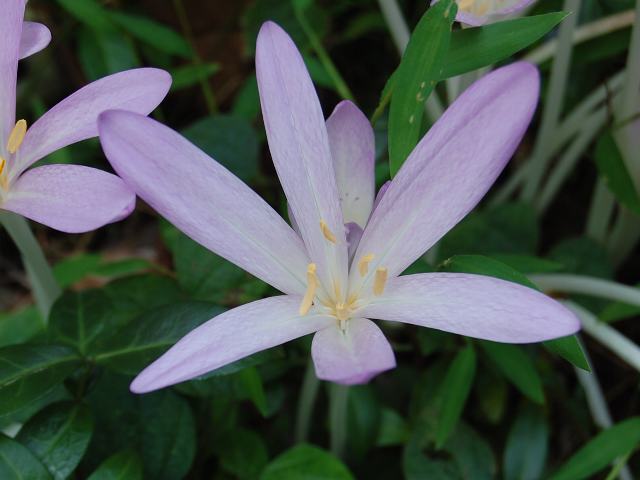 犬サフラン(イヌサフラン) 秋の花 2016年10月19日 犬サフラン(イヌサフラン)はユリ科イヌサフラン属(コルキクム属)の多年草である。分類体系によっては(APG第3版)イヌサフラン科とされる。コルキクム属は地中海沿岸地方や東アフリカ、南アフリカなどに160種くらいが分布する。本種の原産地はヨーロッパ、西アジア、北アフリカである。英名はオータムクロッカス(autumn crocus)という。日本へは明治時代の初期に渡来した。庭植えにもされるが、机の上に置いておくだけでも花を咲かせる。和名の由来は、サフランに似ているが食材として役に立たないことからきている(サフランはフランス料理の食材)。別名をコルチカム(Colchicum)という。これは、属名を英語風に読んだものである。草丈は10センチから20センチくらいである。花の咲くころには葉はなく、翌春になって線形の葉が出てくる。開花時期は9月から10月である。花の色は紅紫色、ピンク、白などである。花径は4センチくらいから大きなものは15センチくらいある。花被片は6枚である。クロッカスやサフランに似ているが、雄しべの数や形状が異なる。本種の雄しべは6本である。多弁化した園芸品種もある。コルヒチンという有毒なアルカロイドを含み、危険である。誤食すると呼吸麻痺を起こすこともある。花言葉は「危険な美しさ」である。10月19日の誕生花である。属名の Colchicum は自生地である黒海沿岸の地名「コルキス(Colchis)」からきている。種小名の autumnale は「秋咲きの」という意味である。写真は10月につくば植物園で撮った。学名:Colchicum autumnale★どことなく妖気を秘めて土の上 犬サフランの灯す明かりか☆サフランに似せて咲かせた毒草の 妖しき姿美しくあり花図鑑植物図鑑ミラーサイト|味の麺匠戸田久|おこめの鬼平|フロム蔵王|花の本屋さん|楽天トラベル| PR